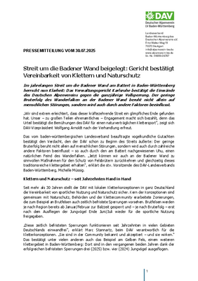 Hier die Pressemitteilung des DAV Landesverband BW vom 30.07.2025 als PDF-Download